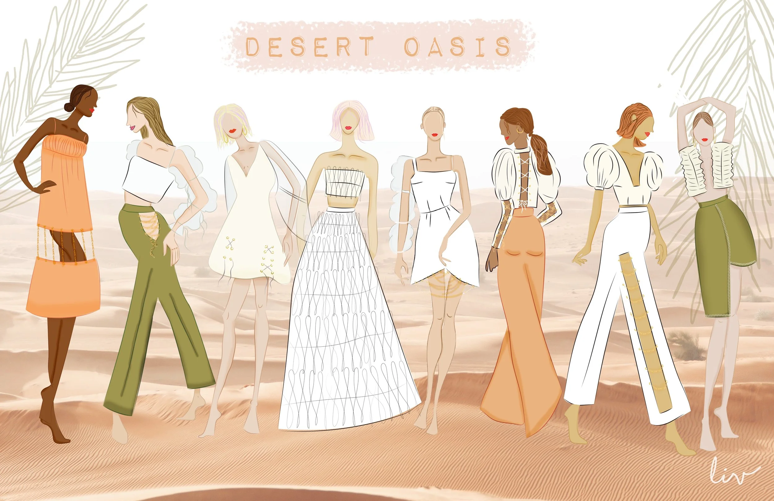 Desert Oasis is a collection that combines the shapes, silhouettes and color story of the desert.