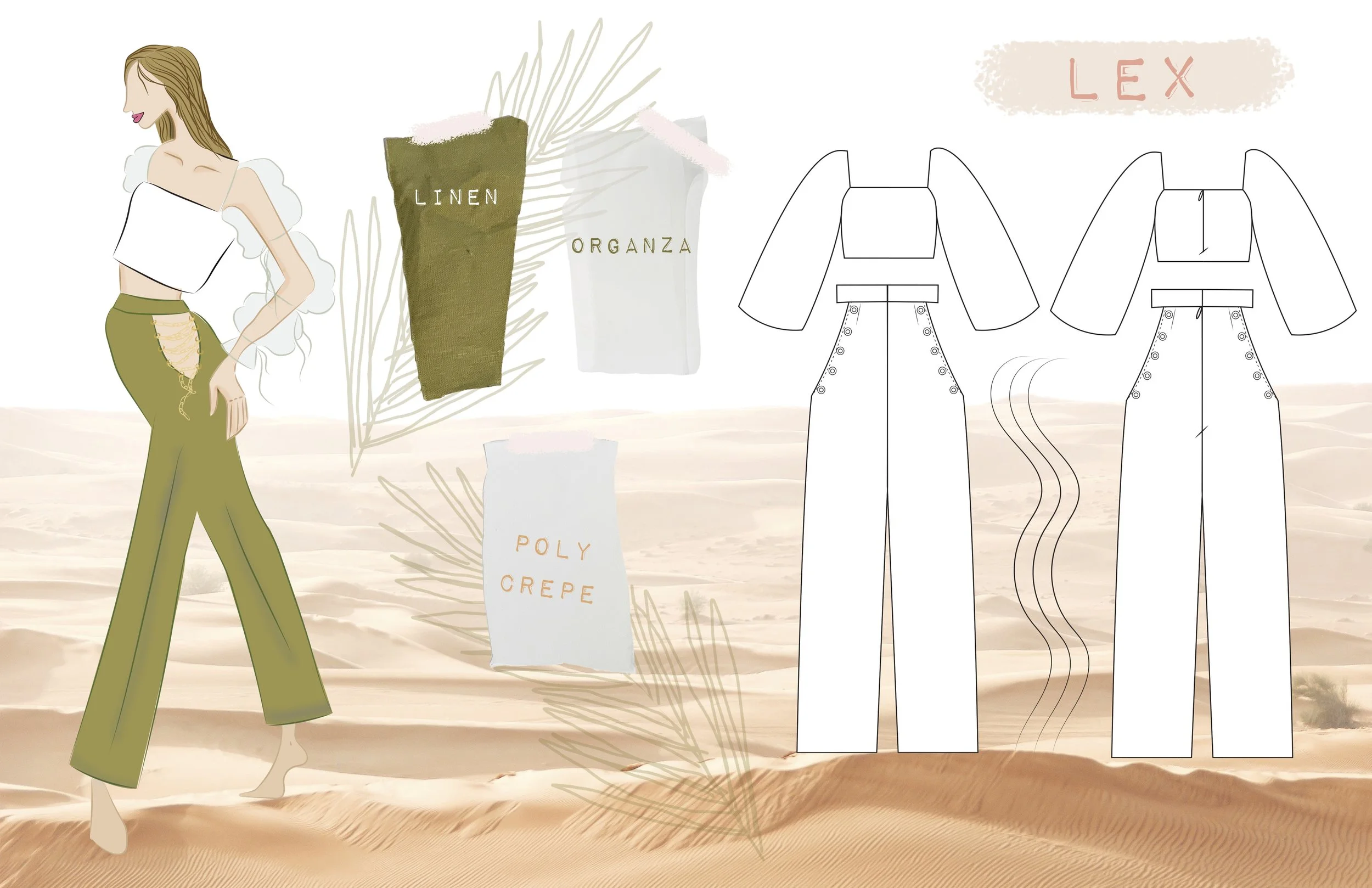Desert Oasis meshes avante garde and unexpected elements with ready to wear styles. One of the main ideas for this collection was to be able to mix and match every piece, resulting in a complete and polished ensemble every time. I pulled inspiration from a place, that to me, sounded like paradise.